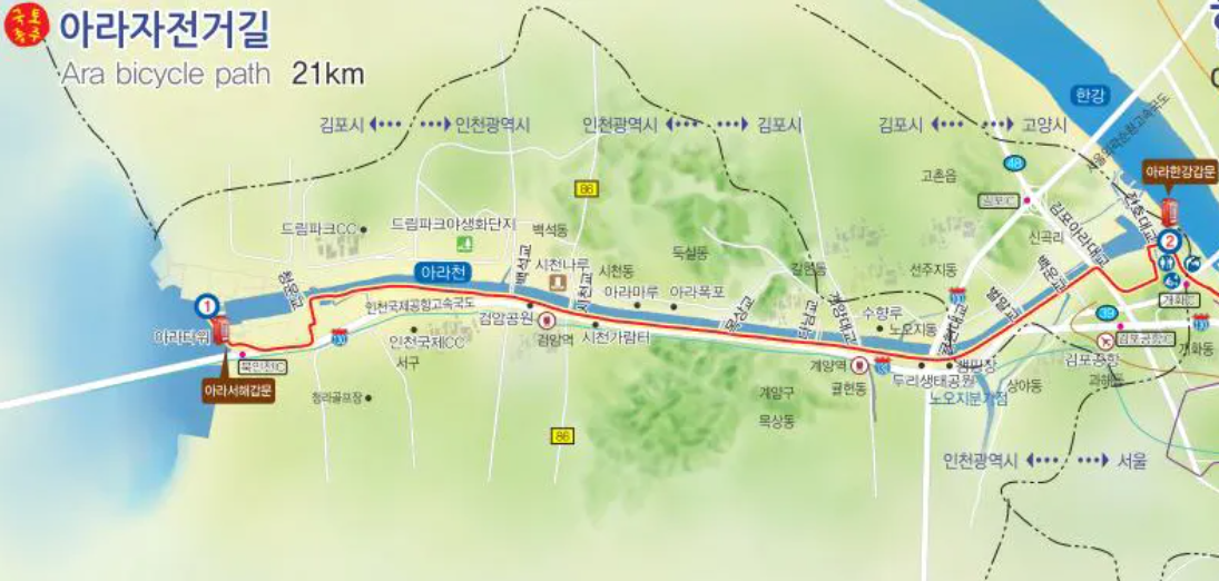 - 자전거 코스: 김포 아라김포여객터미널 → 정서진 (~15km)